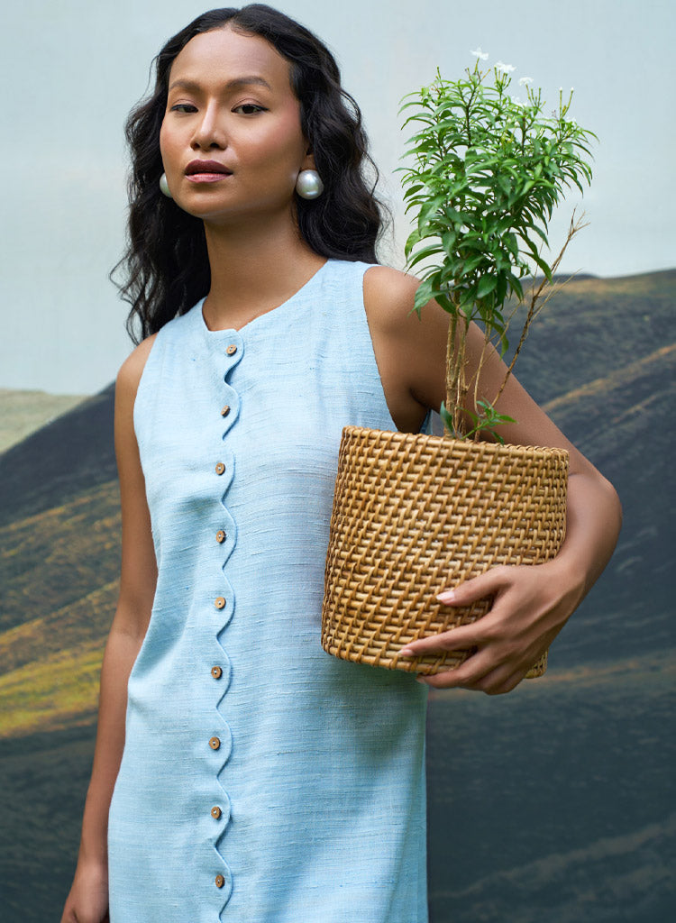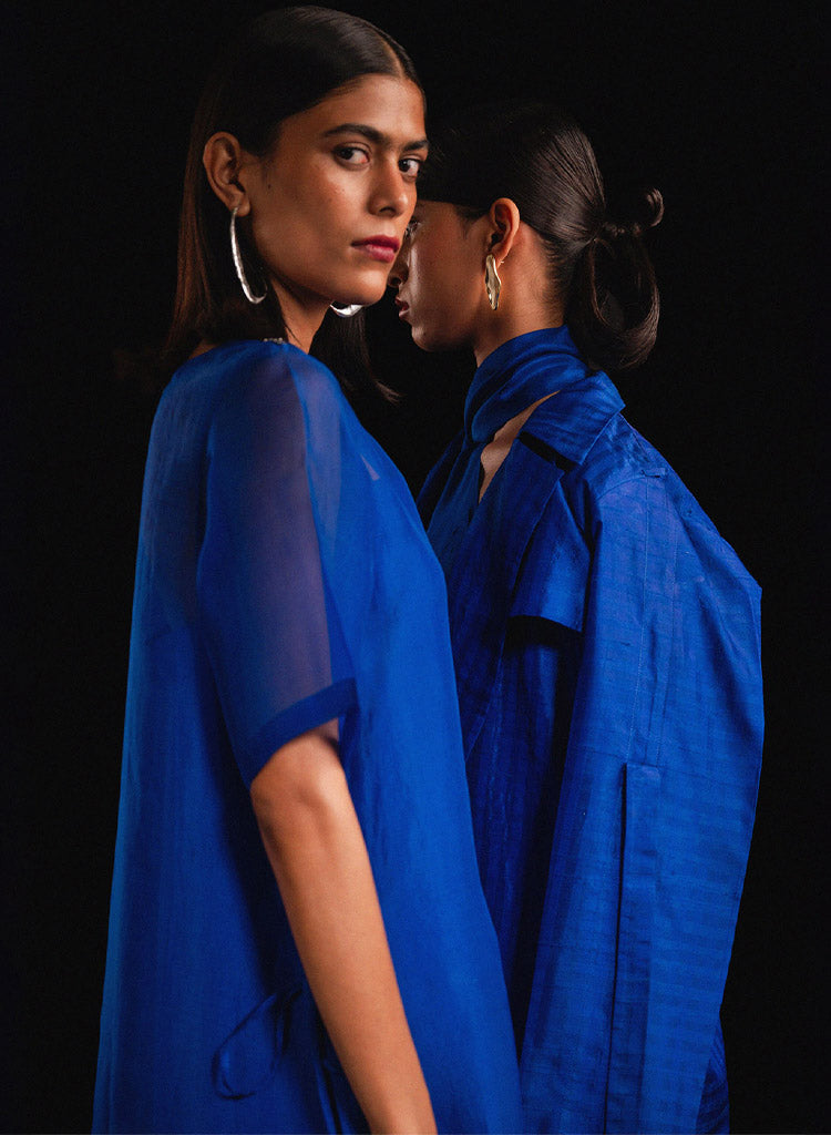 From the rich tone of the night sky to deeply saturated blue-green and striking cobalt, shades of blue find their way into every wardrobe. Blue, it’s dependable, it’s easy and so accessible. Blue is a classic and has never gone out of style however shades of blue are seasonally trendy. Navy adds a touch of elegance while sky or baby blue is soothing and easy to style for a day out. When wearing blue, it's important to consider the occasion, the colour palette of the outfit and your accessories. For formal events, darker blue tones such as navy or royal blue are typically opted for in professional settings while lighter blues for daily and everyday wear - sky blue tiered dresses in chambray for the weekend, crisp cotton blue shirts for running errands and denim blue shorts for lounging in on hot sunny afternoons.