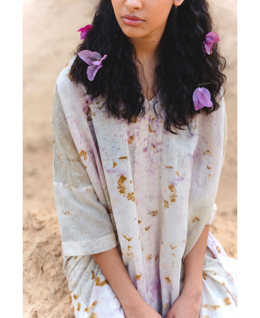 Made in 100% organic handspun cotton, eco-printed with roots, flowers and leaves.