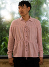 An oversized fitting shirt with drawstring ties at the waist and chest. The lightweight fabric makes it an ideal cover-up for the beach or a casual weekend look. Length 28". The model is 5'8" and is wearing size M.