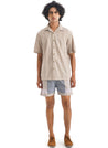 A short sleeve shirt featuring embroidered vine motifs and a camp collar. Length 29". The model is 6'1" and is wearing a size S.