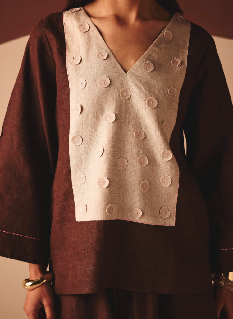 Dry clean or hand wash in cold water. Iron on a warm setting. Line dry in shade.
