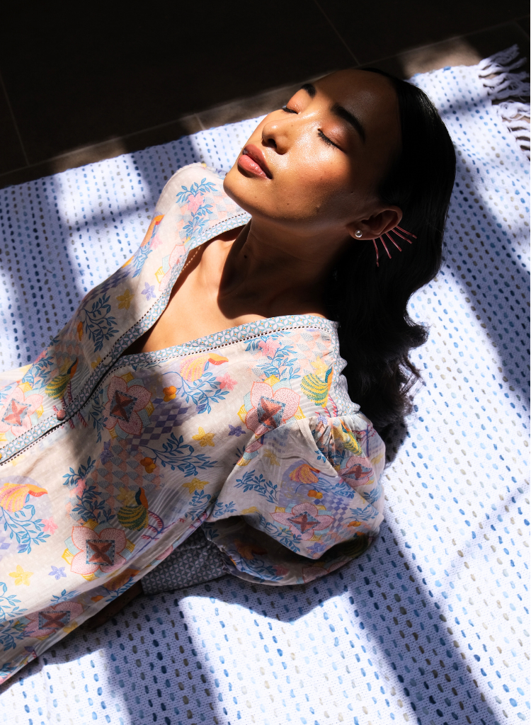 Dry Clean Only. Do not Soak. Do not wring. Line dry in shade. Iron on reverse.