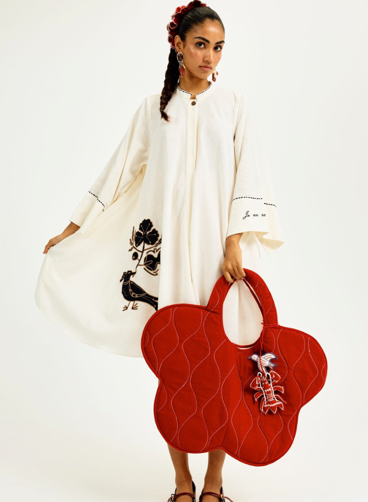 A whimsical hand embroidered lobster charm crafted from upcycled textiles, perfect to clip on to your bags, belts or keys.