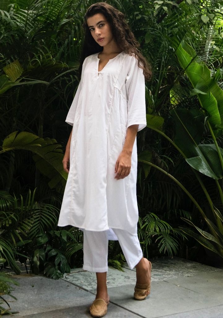The essence of Basant Kothi lies in its dedication to quality fabrication, sustainability, and mindful living. Their clothing line is a blend of relaxed silhouettes and modern minimalism, designed to fit seamlessly into your everyday wardrobe. From easy-to-wear dresses to staple separates, their pieces are made for the woman who values both comfort and elegance. Each garment is crafted with an emphasis on handcrafted techniques and attention to detail, ensuring that every piece is not just a garment, but a timeless addition to your wardrobe