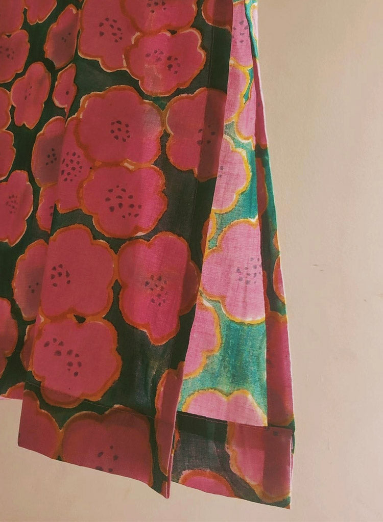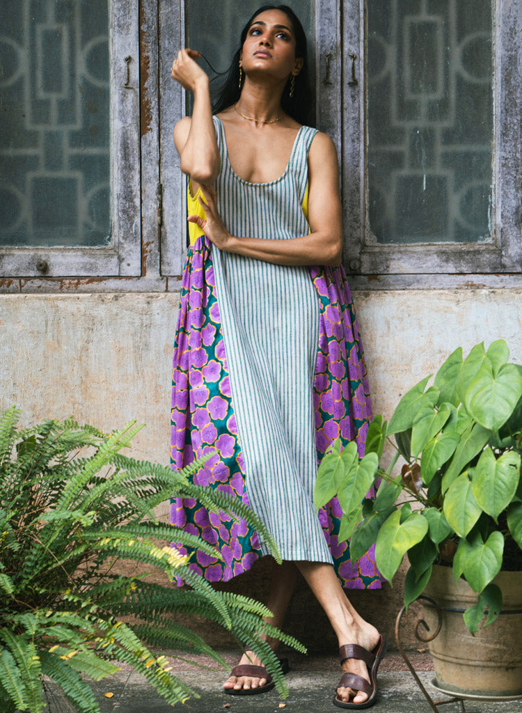 At Deeta, every design begins with the fabric. The brand works exclusively with natural, sustainable textiles, think handwoven Chanderi, intricate Banarasi weaves, and cotton handloom from the skilled weavers of West Bengal. These textiles, rich in texture and heritage, are elevated through inventive surface techniques, handcrafted detailing and a subtle play of contrasting hues.