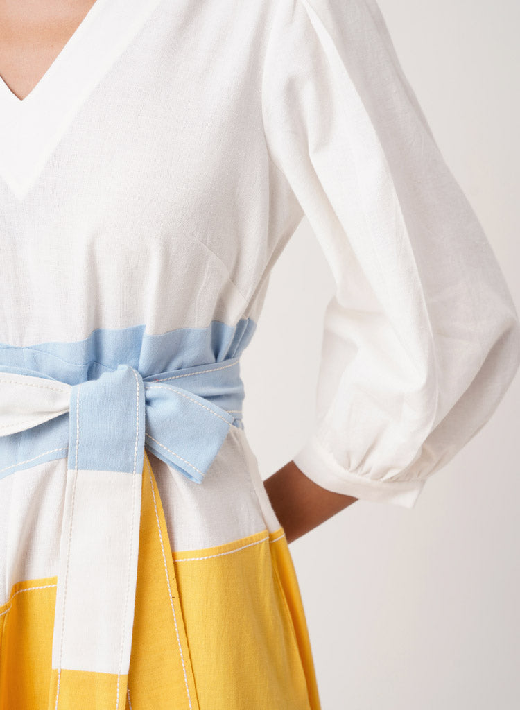 Elevate your evening wardrobe with this maxi dress that exudes sophistication. The intricate panels and elegant belt add an air of exclusivity to this luxurious piece. Perfect for any formal occasion, this dress is a must-have for those who appreciate timeless, mindful fashion. Length 52". The model is 5'10" and is wearing a size S.