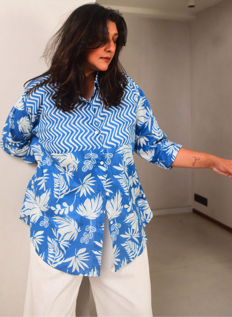 A relaxed fitting shirt with floral printed yoke at the front and back. The soft fabric drapes effortlessly, creating a casual yet stylish vibe, perfect for your weekend getaway. Front length 29", Back length 31". The model is 5'6" and is wearing size L.