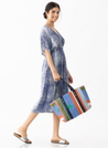 A perfect fashionable & colourful handbag to use every day. Your wallet, laptop, notebook, and everything else can be carried in it. It closes completely with a secure zipper closure. There are two interior pockets: a zippered pocket and a flat one with a leather trim. Comes lined with madras-checkered lungi fabric.
