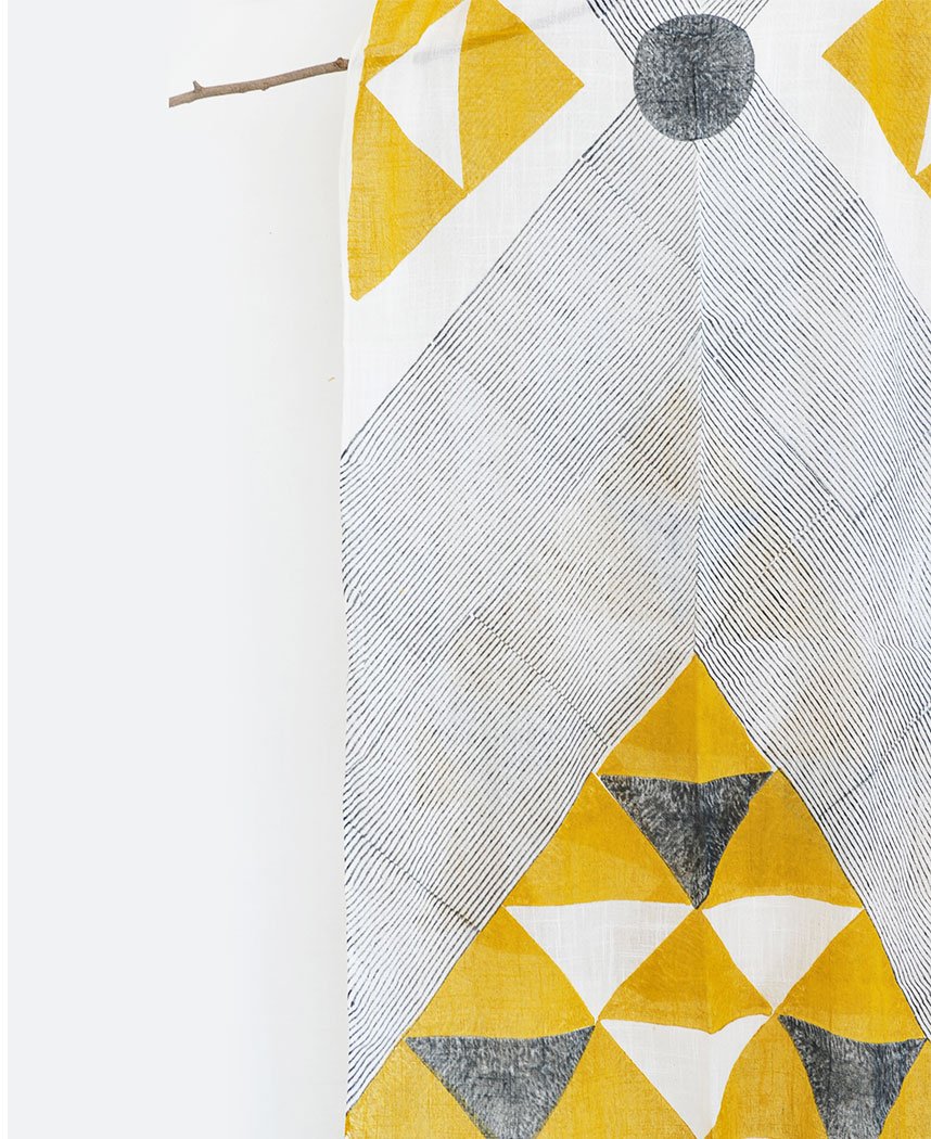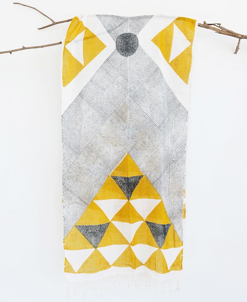 Crafted from handloom cotton and then carefully hand block printed this scarf is 2 meters in length and 23 inches in width.