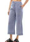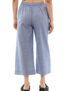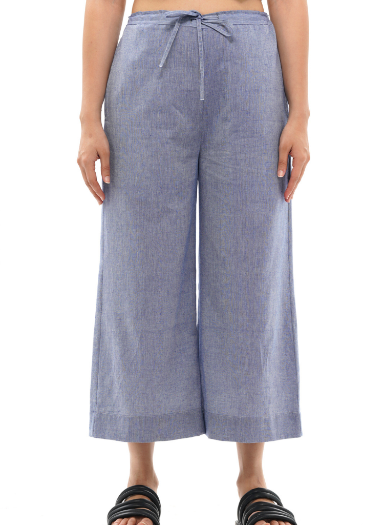 A pair of cropped palazzo with an adjustable drawstring and an elasticated back waist belt featuring side pockets. Made in 100% cotton. The model is 5'7" and wears a size S. This product is handwoven and handcrafted. Slight differences in the colour, texture and finish are to be cherished, not misunderstood.