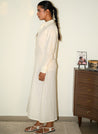 A classic shirt dress featuring a button-down front, a sharp collar, and cuffed long sleeves, making it a versatile piece. Length 50". The model is 5'6" and is wearing size S.