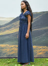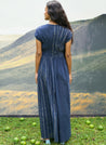 An elegant maxi dress featuring gathered, elasticated panels up to the waist for a flattering fit. The tie-up openings on the chest add a charming, adjustable detail, making it perfect for effortless, all-day wear. Length 53". The model is 5'6" and is wearing a size S.