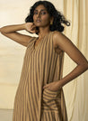 An easy breezy A-line midi dress featuring a V-neck and oversized patch pockets. Length 48". The model is 5'9" and is wearing a size XS.