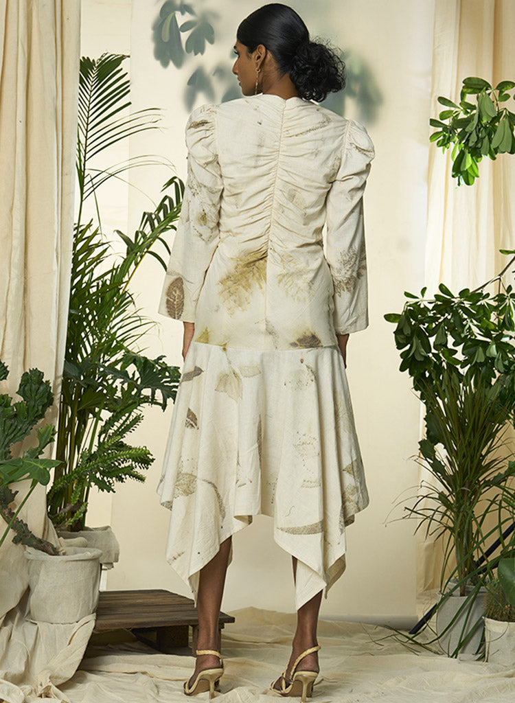 If making heads turn is what you're going for, this dress will do the job. This fun and functional dress has a fitted bodice with structured leg of a mutton sleeves and pleat details running in the front. The bottom part has a bias cut bottom flare, letting you move with style and comfort. Length 54". The model is 5'6" and is wearing a size S.