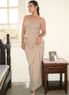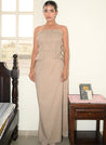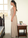 A two-piece set pairing a tube top and a maxi skirt. The tube top showcases a comfortable smocked design that hugs your figure. Length 14". The straight-cut skirt flows gracefully, with side slits adding a modern edge and enhancing your silhouette. Length 40". The model is 5'6" and is wearing size S.