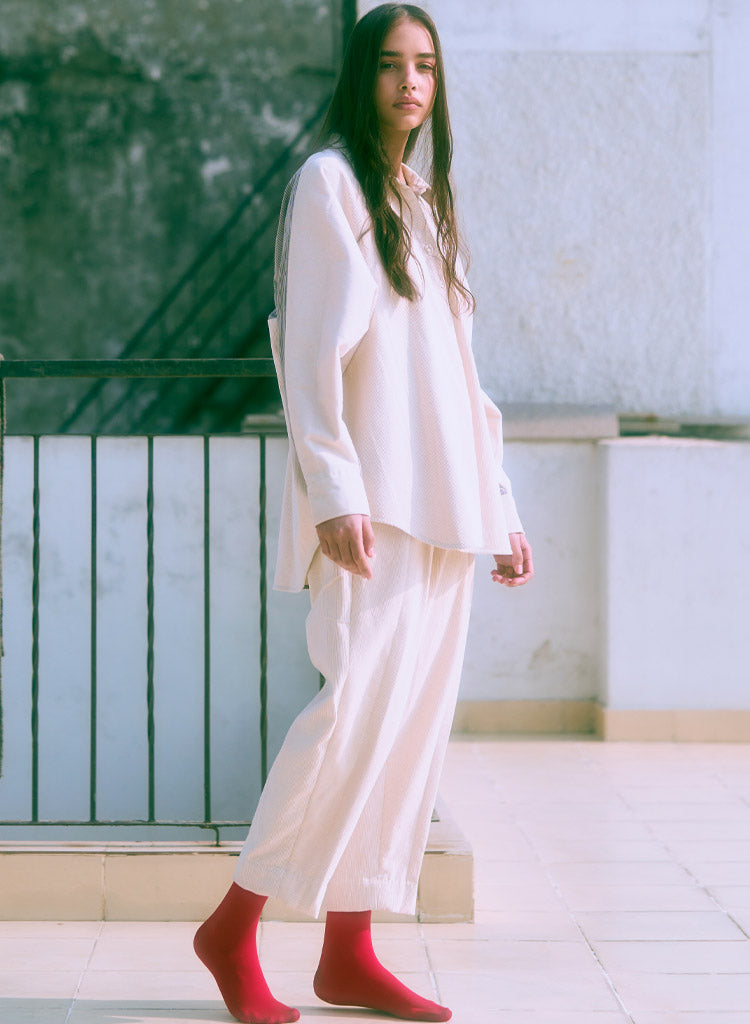 Itr bloomed without a blueprint in a room on the roof with a simple thought of crafting ‘comfort in chaos’. The basic building blocks of Itr’s Minimal, Handcrafted, Wardrobe Essentials are rooted towards creating garments that are unbiased - In seasons, trends or time. What might often seem simple has indeed had a long journey through many humble human hands; crafted with caring patience and with attention to detail.