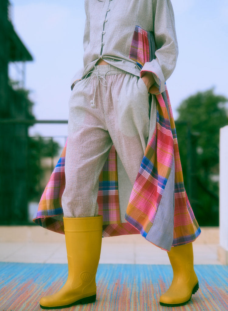 The word ‘इत्र’ [ITR] (pronounced as I-tra) comes from the Arabic word ittar, which means essence. Itr believes in contrast, everyday essentials, and beauty that lies in minimalism. At Itr each design is crafted by carefully curating and juxtaposing textiles of different genres, to create a unique essence. The garments are a blend of modern sensibilities, fused with traditional silhouettes that imbibes the principle of longevity and sustainability, in terms of design and material practice. Itr creates unbiased designs, which are not bound by trend, time, age, size or place, garments for a timeless wardrobe, that can be borrowed and shared within generations.