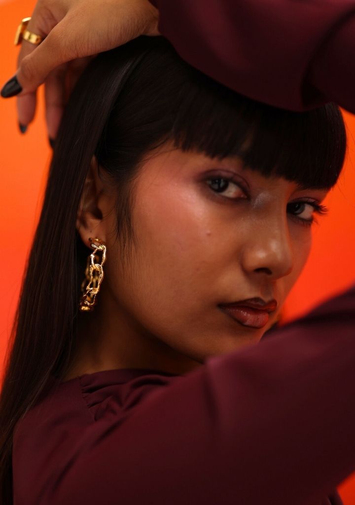 A pair of statement, abstract and textured link hoops. Dimensions 5cm.