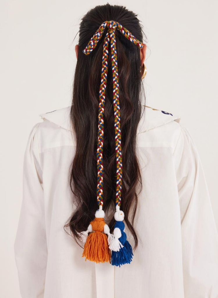A two-piece set pairing the Kiji Shirt Dress and the Kiji Embroidered Bib. The shirt dress is relaxed enough for vacation dressing but casual enough to do, well, anything else. Features an asymmetrical hemline with an under hem detail, charming detailed embroidery on the back, hem and cuff with a handmade kaaj detail. Length 34". A collar bib with playful appliqué detailing. Length 29". The model is 5'6" and is wearing a size S.