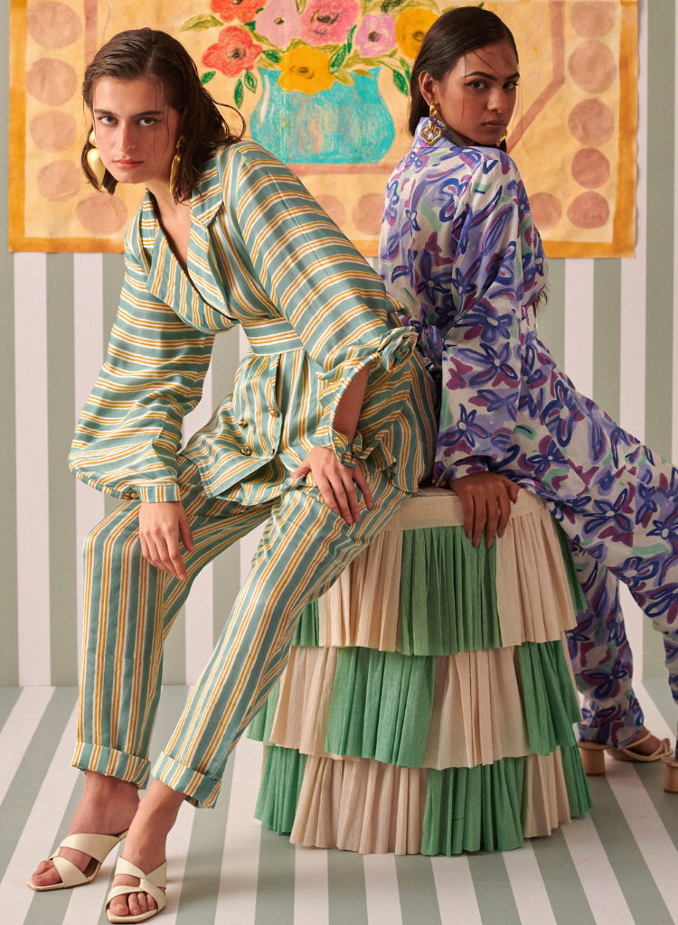 At the heart of Khajoor Studio is a deep reverence for Indian handcrafts. Each piece is meticulously handcrafted in collaboration with local artisans across India. Whether it’s hand-knits made from indigenous Indian wool by women artisans or hand-printed textiles sourced from traditional block-printing clusters, the brand is committed to preserving age-old techniques while reimagining them for the modern wardrobe.
