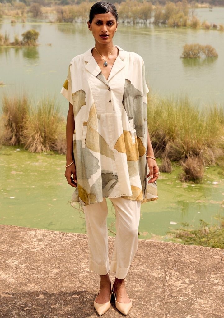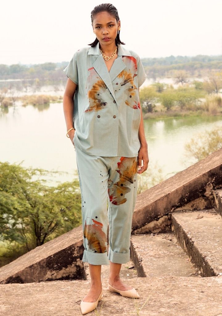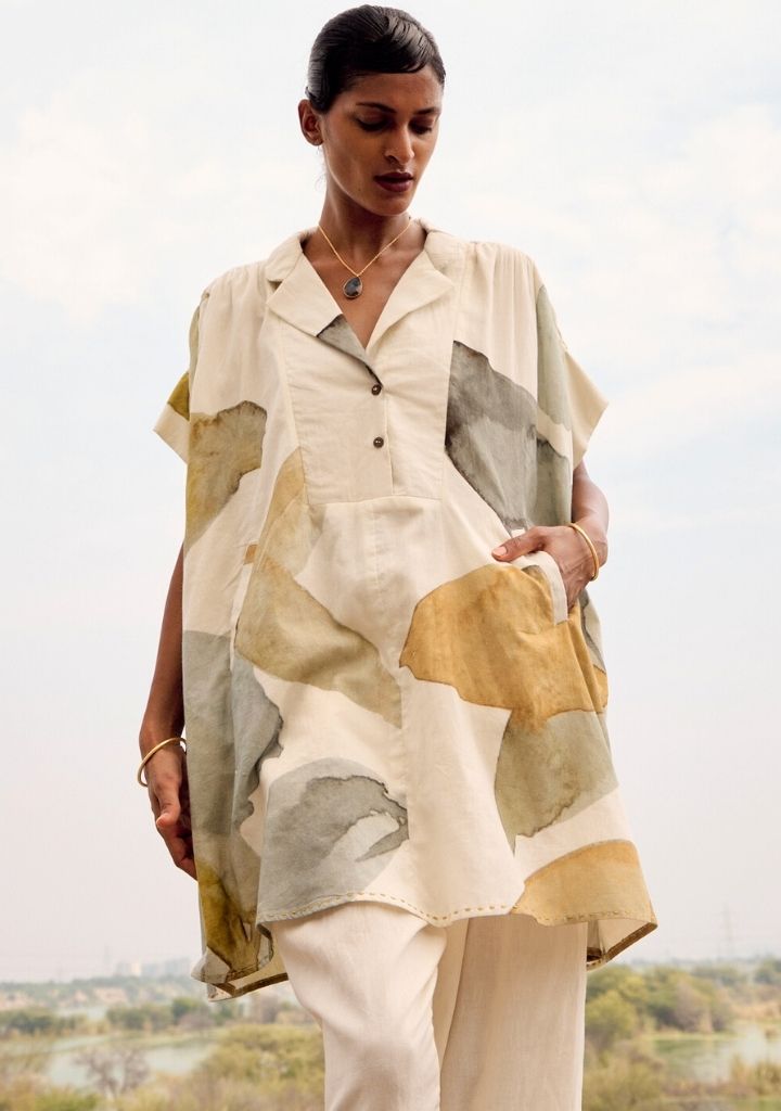 Their design philosophy revolves around the idea of minimalism, clean cuts, and relaxed silhouettes in pure fabrics, earthy tones and simple prints. Khara Kapas is a translation of love and purity. Every design is distinct, unique and a wearable art piece.