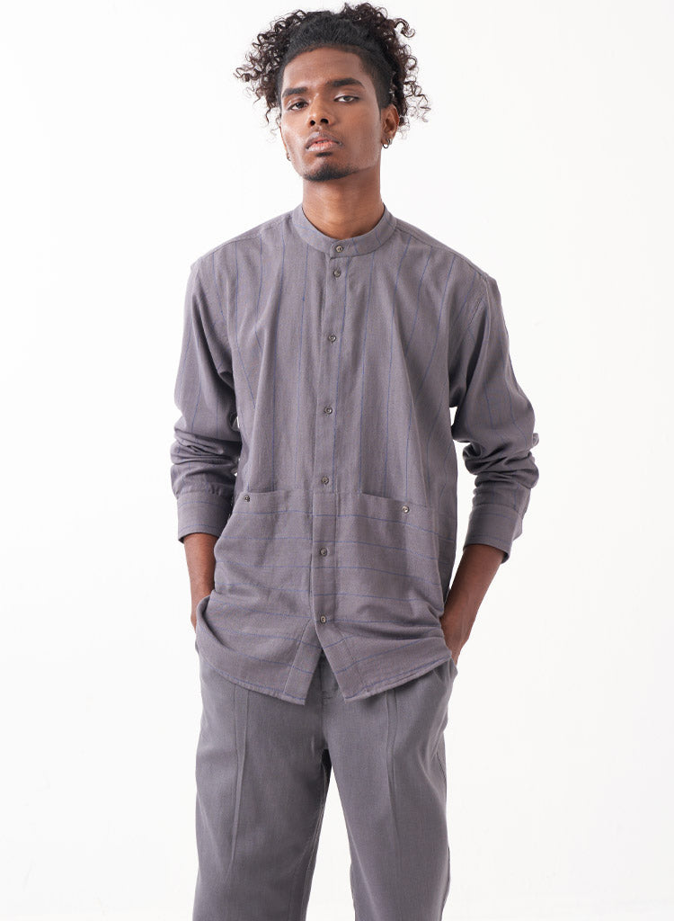 A classic shirt with contrast linear embroidery and a concealed front placket. Length 28".The model is 5'9" and is wearing a size M.