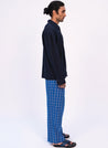 A pair of oversized checkered pants featuring a regular waist, a front pleat, snap buttons, a front fly closure and multiple pockets. Length 42". The model is 6ft and is wearing a size S.