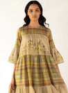 This dress blends Japanese and Scandinavian influences with watercolour art flowers and checks. Features a round neck, flared sleeves and inseam pockets. Length 50". The model is 5'5" and is wearing size S.