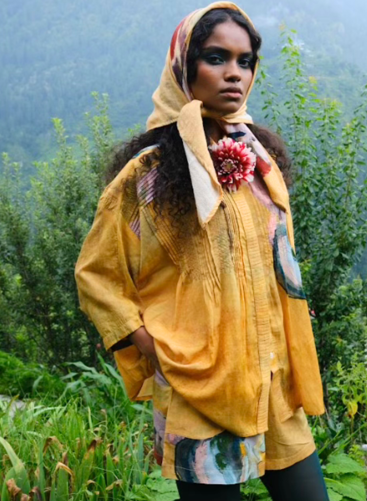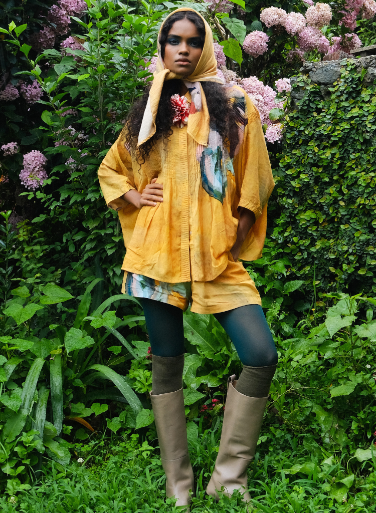 A printed scarf celebrating the fluidity of brushstrokes and the depth of the pigment, blending artistry with wearability.