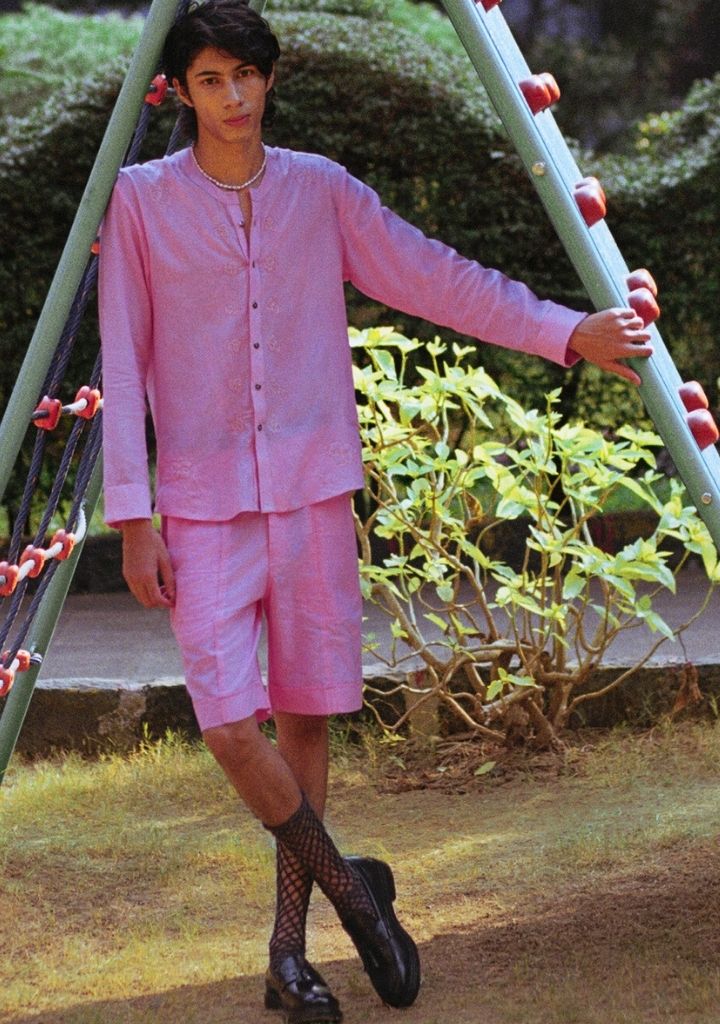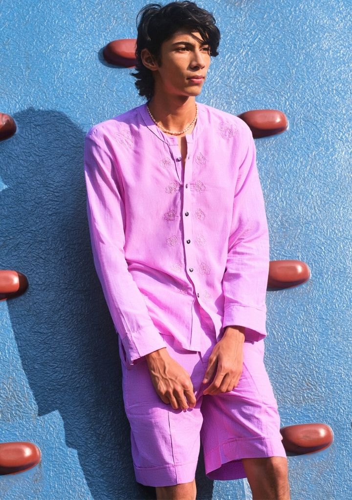 A boxy-fitting shirt with an open collar and hand embroidery details featuring a front button placket. Length 27.25". The model is 6ft and is wearing size S.