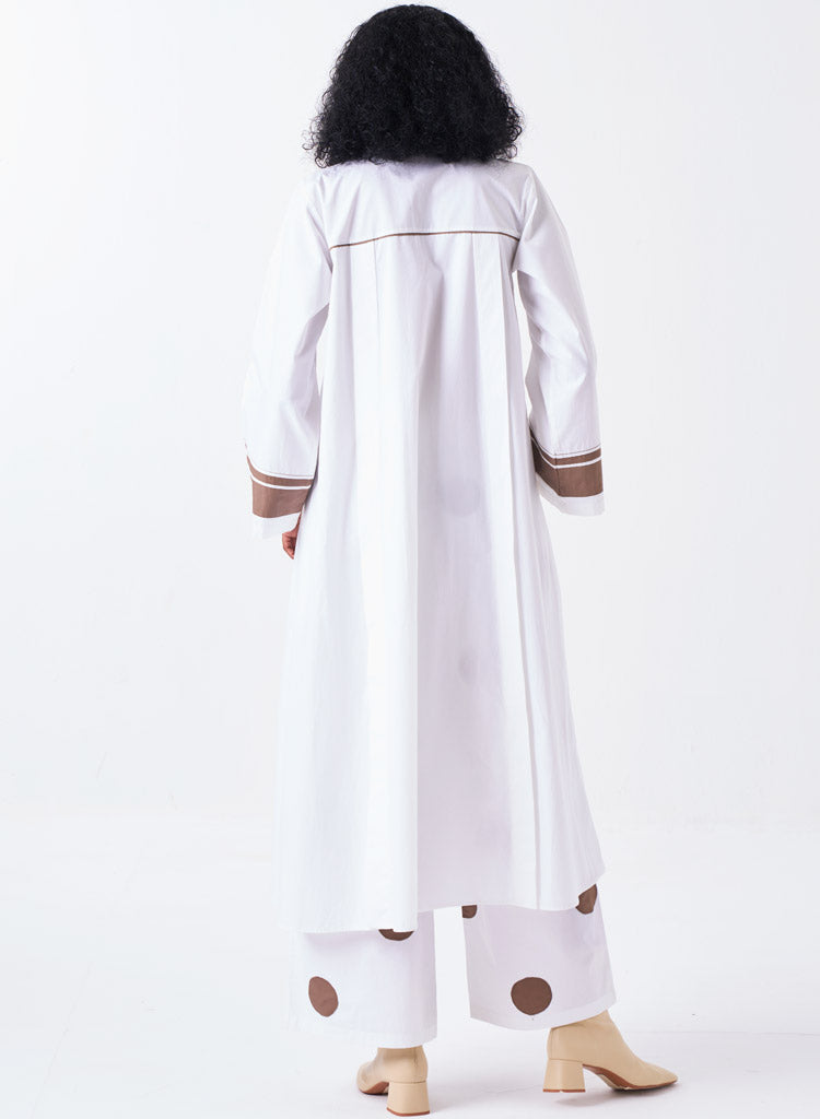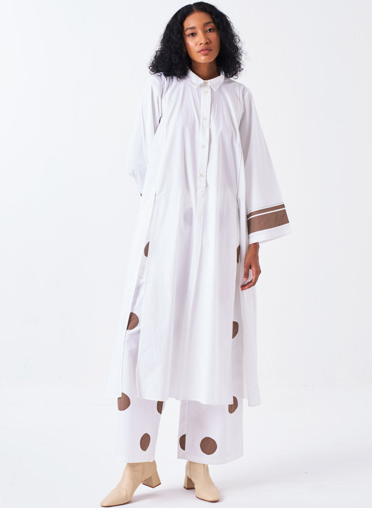 A pair of polka printed wide-leg pants featuring side pockets and an elasticated waist. Length 38". The model is 5'9" & is wearing size S.