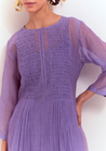 A two piece set pairing the Effervescent Kurta and the Petals of Passion Pants. The A-line kurta with pintuck and pleat details features a round neck, wide sleeves and side slits. Length 47”. Comes with a slip. The Dhoti pants with cutwork tassels feature a fitted waist. Length 36”. Made in Chanderi silk.
