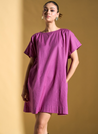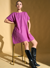 An easy breezy short kaftan dress featuring boat neck and short sleeves Length 34”. The model is 5'7" and is wearing a size XS.