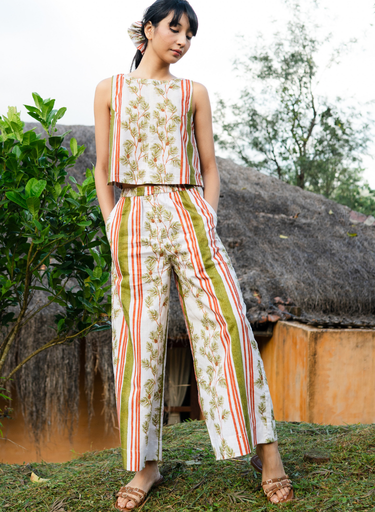 A sleeveless top featuring overlap stitch detailing along the sides. Length 18-19". The model is 5'3" and is wearing a size S.