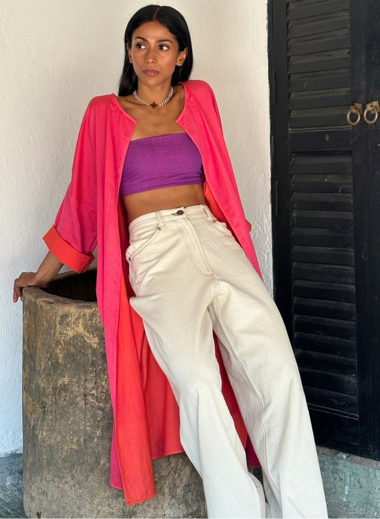 Gentle hand wash with mild detergent. Line dry in the shade. Do not dry clean.