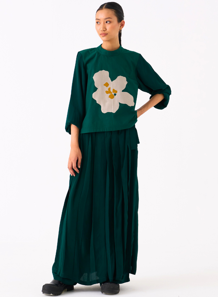 Skirt Pants have a pleated top layer with straight pants inside and side pockets with an elasticated back. Skirt full length 40", Pant full length 38". The model is 5'7" & is wearing size S.