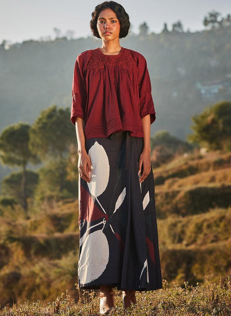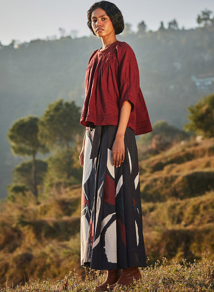 Dry clean or wash separately in cold water. Wash with like color fabrics. Hang dry or dry in shade. Do not soak. Avoid hot water.
