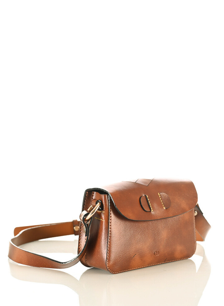 A compact sling bag perfect for short city breaks or routine day travelling. Features a magnetic button closure and comes with a removable inner pouch. Crafted from up-cycled all-weather leather.
