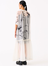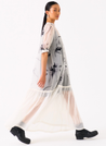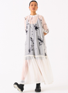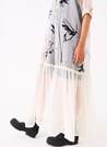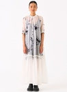 A tiered maxi dress with a gathered neck and hem featuring a high round neckline, back keyhole opening and short sleeves with elasticated hem. Length 51". The model is 5'7" & is wearing size S.