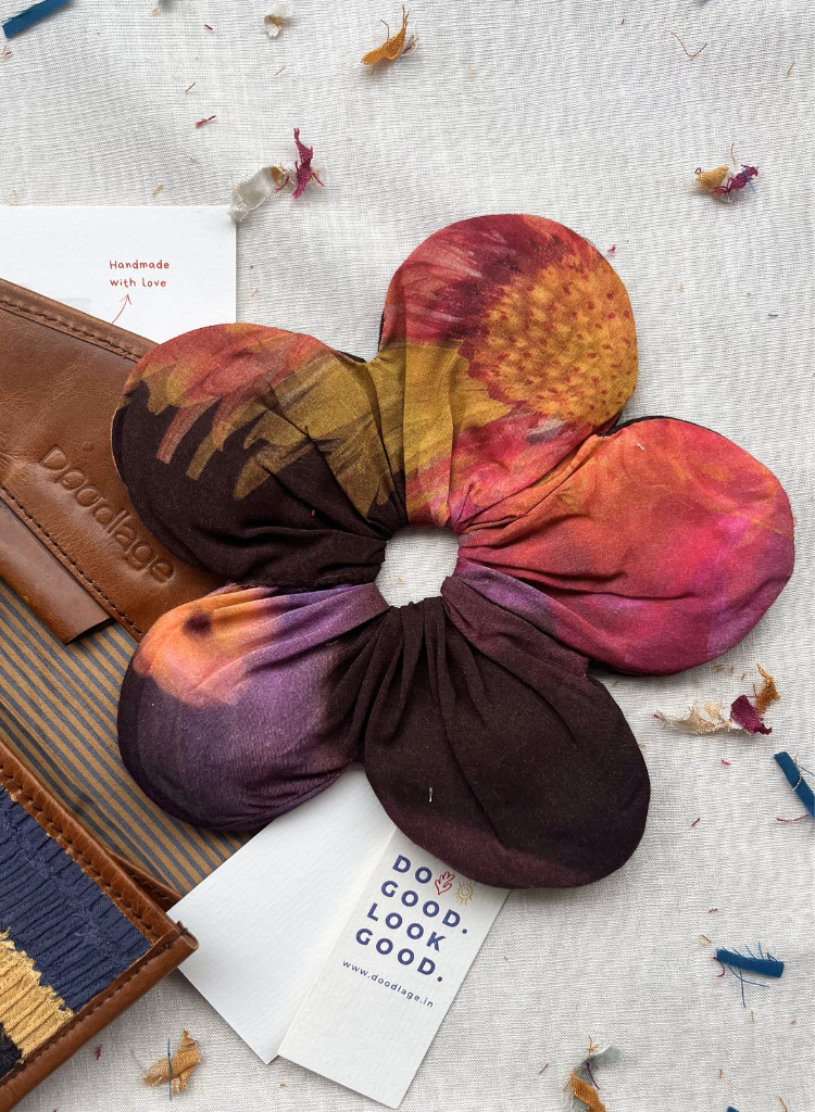 Elevate your accessories game with the stunning floral shape printed scrunchie. Perfect for dressing up or adding a pop of colour to your everyday look.
