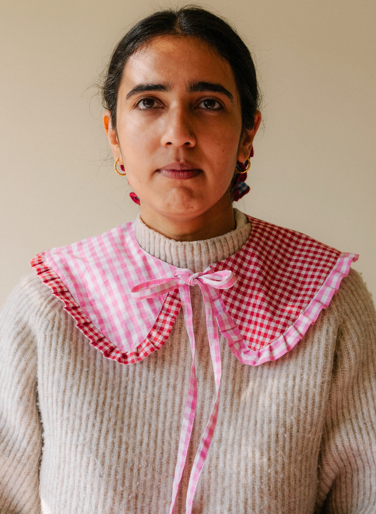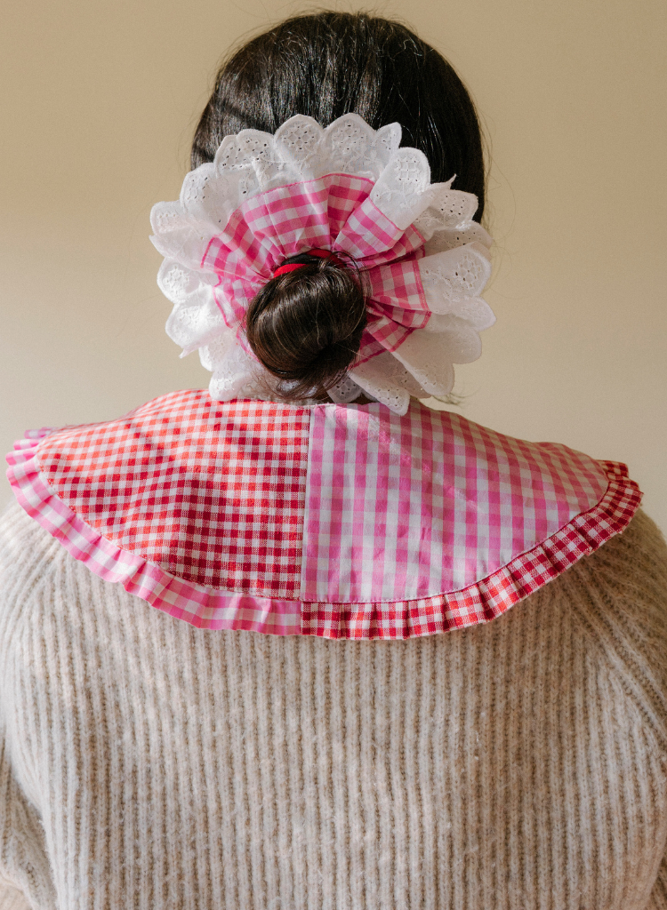 Ms. Antoinette's personal collar. Dual textured and coloured ginghams for whatever mood you wake up with.