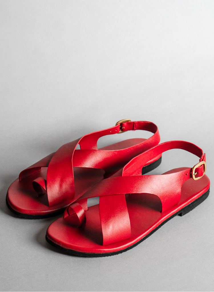This style features crisscross straps with a toe thumb strap and an adjustable buckle strap at the back that grips your foot firmly.