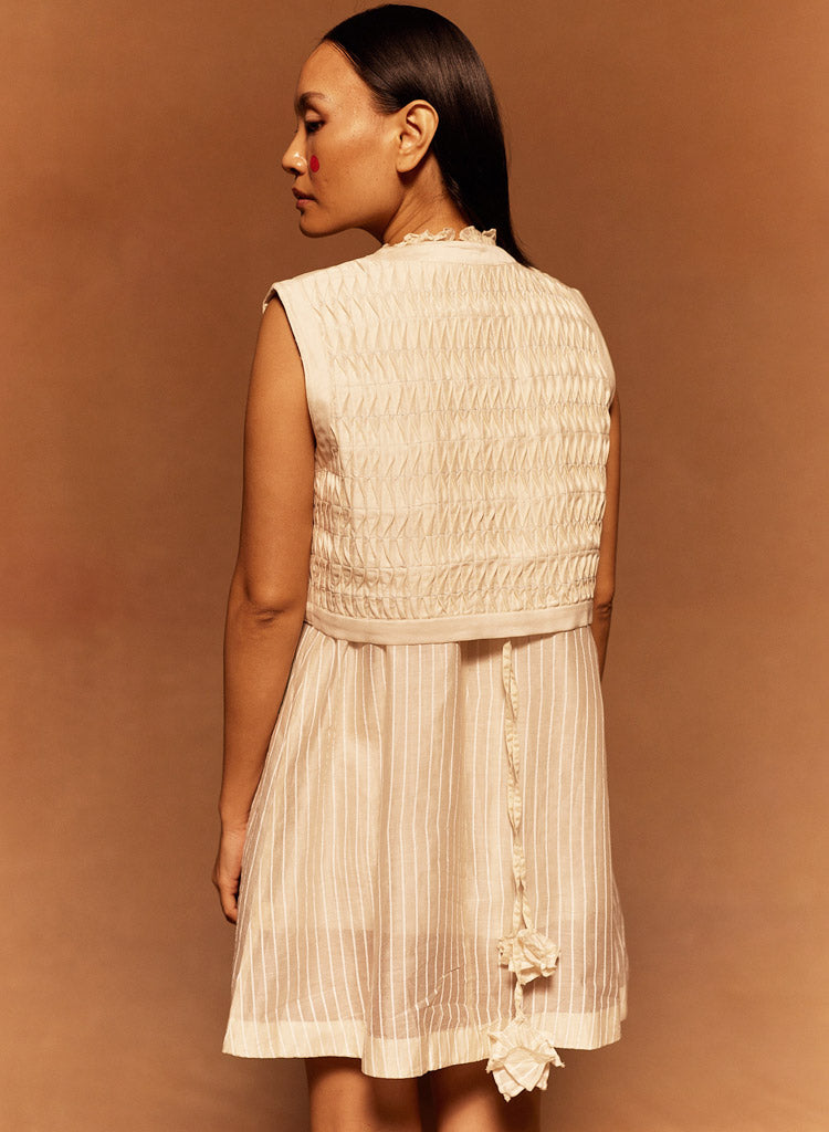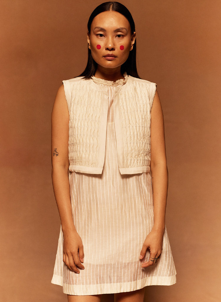 A cropped open front jacket with shell tuck detailing. A versatile layering piece, it effortlessly adds an air of refined sophistication to any look.Length 16". The model is 5'8" and is wearing a size M.