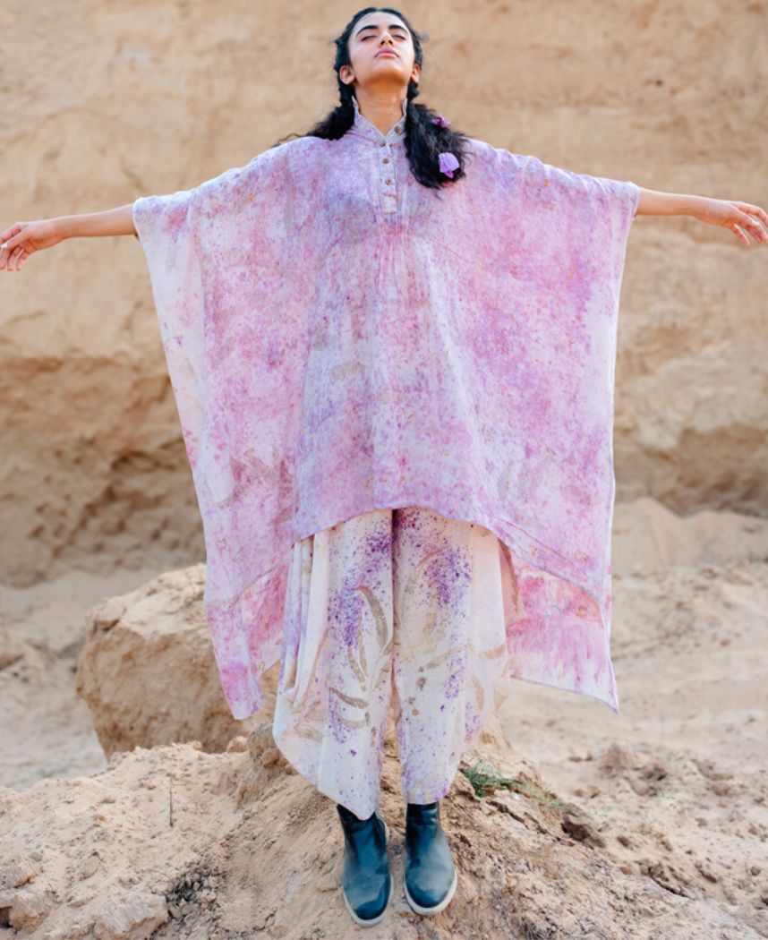Made in 100% organic handspun cotton, eco-printed with roots, flowers and leaves.