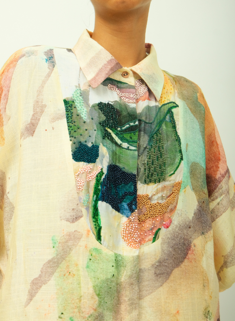 Variations in colour, texture and weave are inherent due to the handmade nature of the garment.