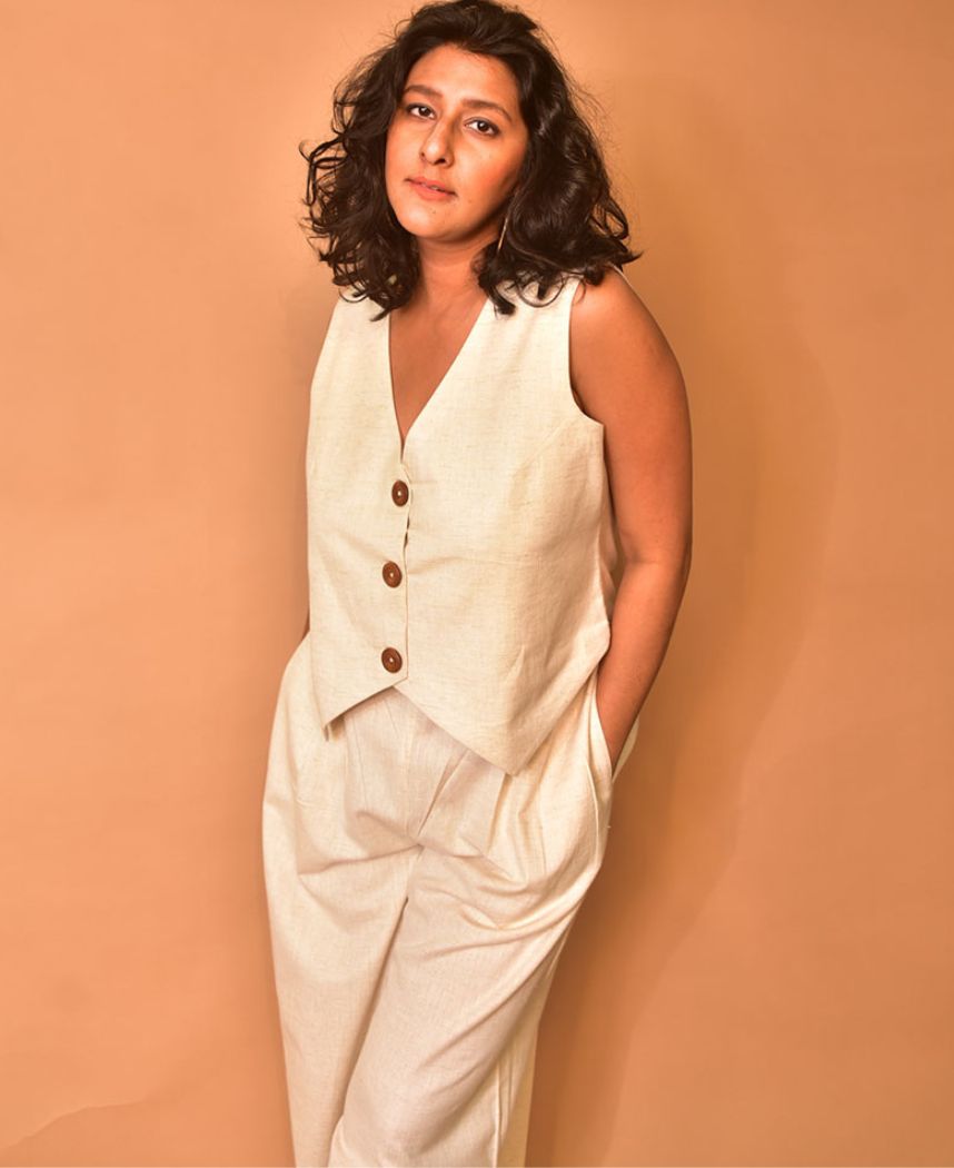Made in organic cotton. Lined. This fabric is produced in small batches. Variations in colour, texture and finish are inherent to the process making each piece unique.