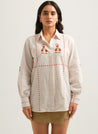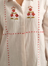 A two piece set pairing the Andre Embroidered Shirt and the Andre Skort. The classic shirt hand embroidered using dainty beads and silk threads features a long cuff with a puffed sleeve. Length 27". The classic skort features shorts inside for added comfort. Length 15". The model is 5'5" and is wearing size S.