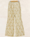 Flared pants with contrast appliqué details. Features inseam pockets and a concealed side zipper. Length 41". The model is 5'6", and is wearing size S.