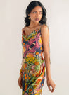 A slip dress that combines charm and comfort, featuring cowl detailing at the neck for added flair. Perfect for making a statement on any occasion, it also has strings at the back to adjust the waist to your preference. The model is 5'7" and is wearing size XS.
