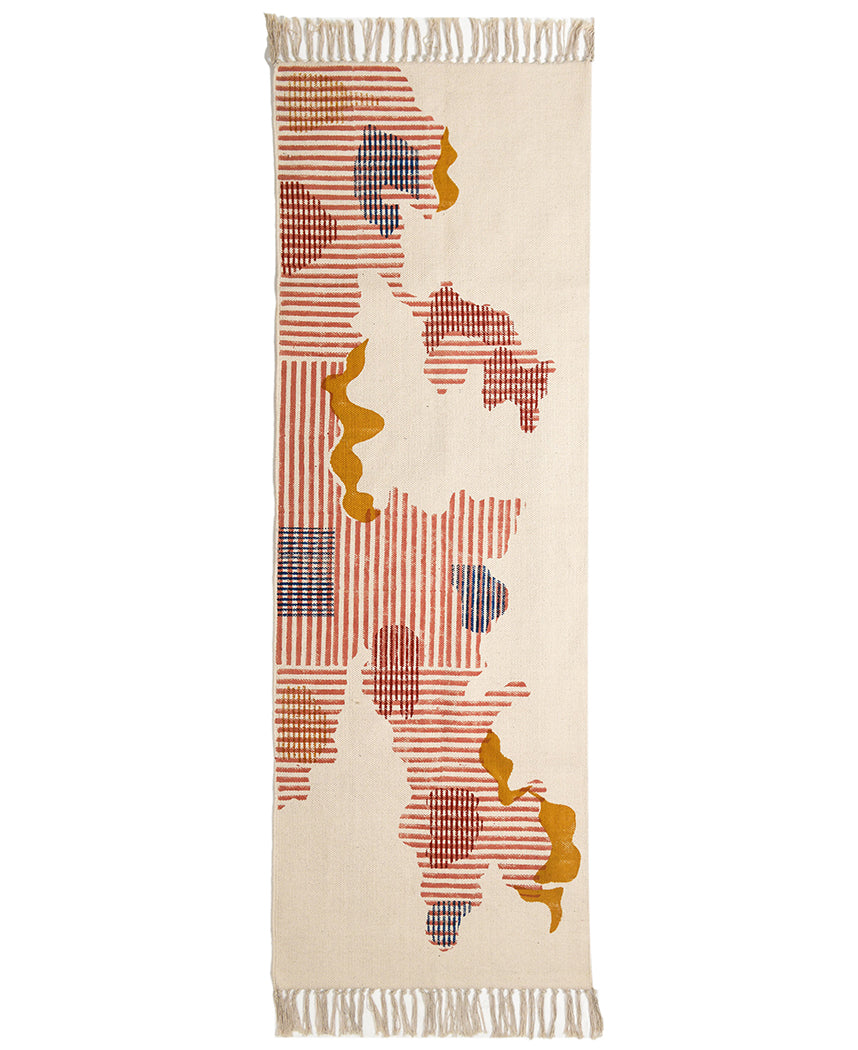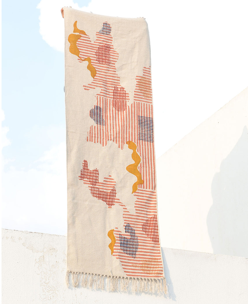 Hand-spun cotton, handwoven in the Banskho village and subsequently handprinted in Bagru. Dimensions - 2ft x 6ft.